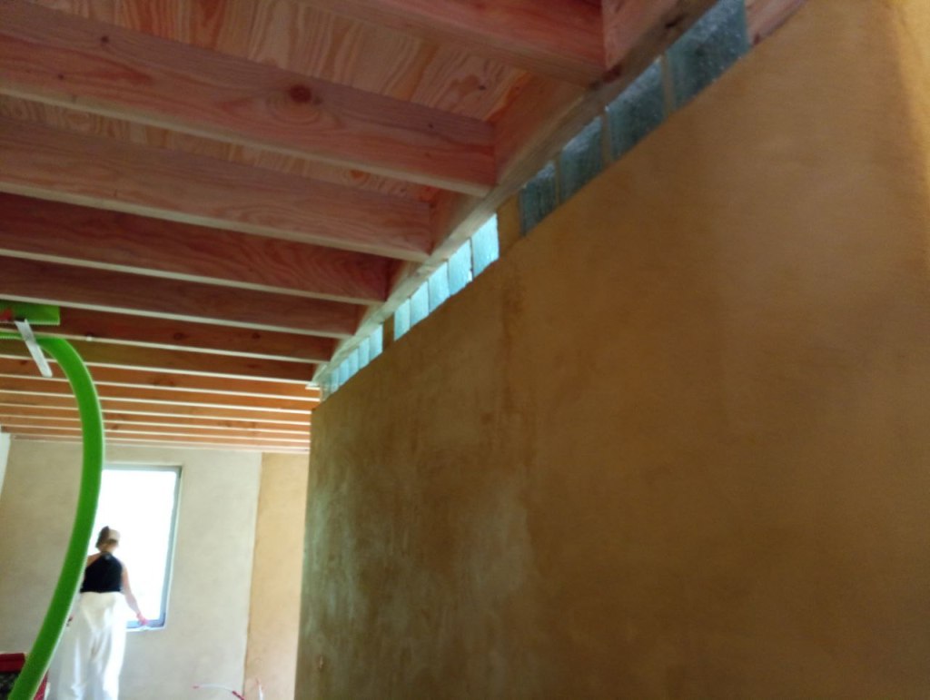 Le résultat final est très beau, avec une couleur ocre jaune vive et douce, arrondie et le travail artisanal est bien visible. Après avoir appliqué le plâtre d’argile, la pièce est bien ventilée et l’humidité est soigneusement éliminée. Les murs prennent progressivement des couleurs plus claires et plus pâles.