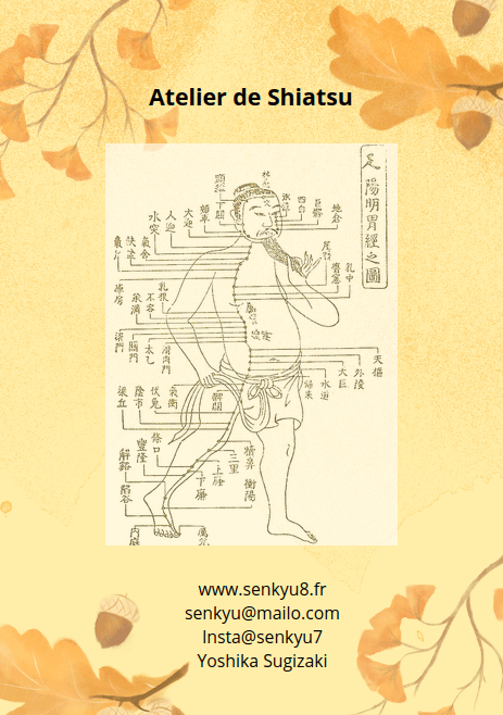 Je donnerai également un atelier de shiatsu. Si vous êtes intéressés, n’hésitez pas à venir!