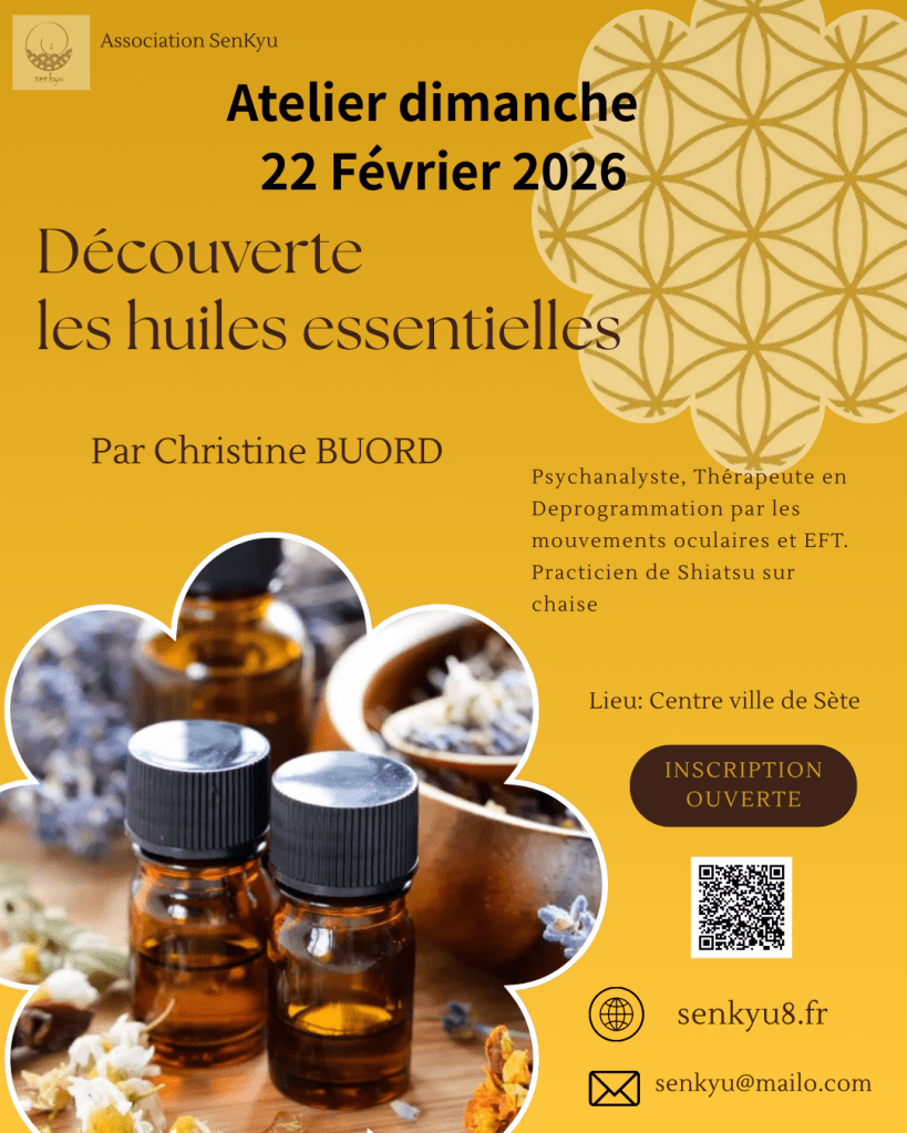 L’atelier dimanche « Yoga saisonnier », nous aurons le plaisir d’accueillir Christine BUORD à l’atelier pour découvrir sur les huiles essentielles.